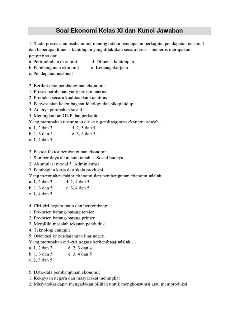 Soal Uts Ekonomi Kelas Xi Dan Kunci Jawaban Pdf